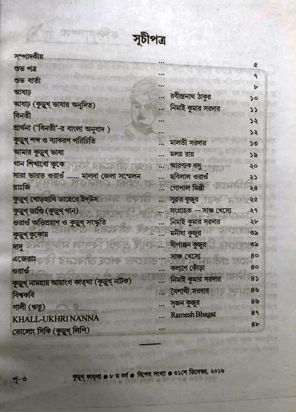 কুড়ুখ কাতথা – Oraon Culture and Literature Journal – December 2016